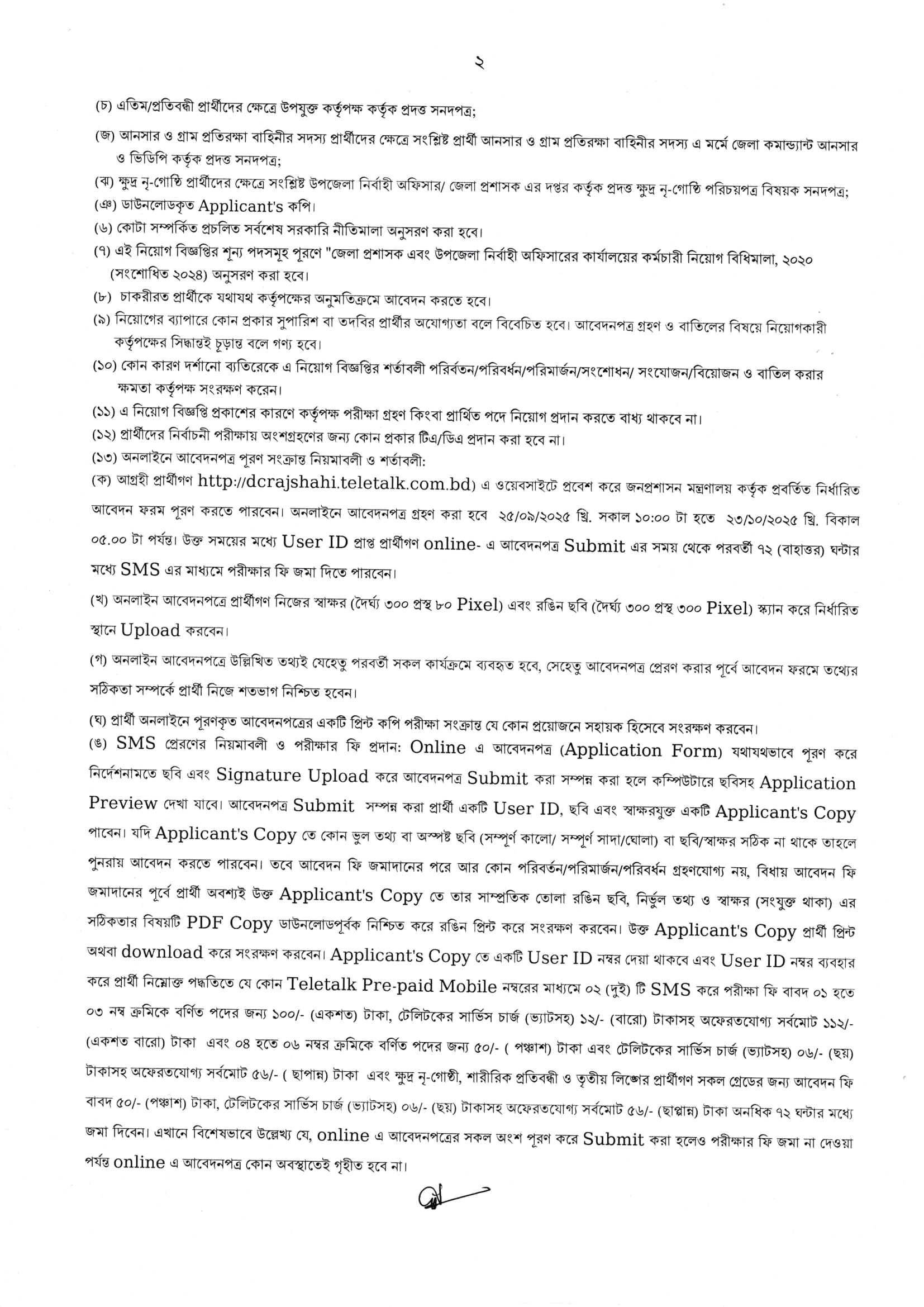 Application Link: http://dcrajshahi.teletalk.com.bd/dcrajshahi202509/