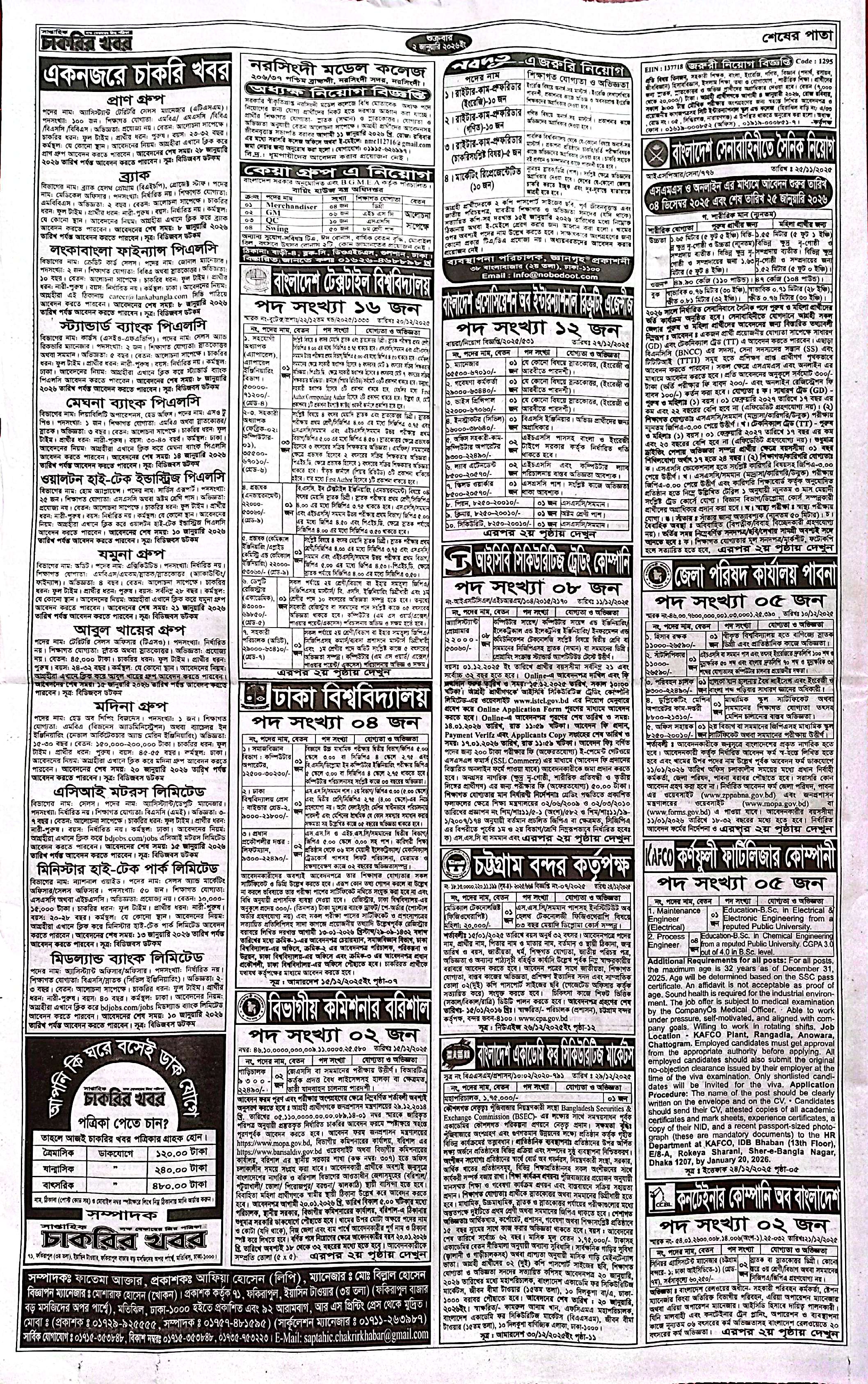 Saptahik top jobs circular published for unemployed, four PDF files available in photo/pictures. Check Laksh Bekar’s favorite biggapon from our website, here you can find government, private, NGO organization, company and other job news. Saptahik Chakrir Khobor E-Paper 2 January 2026 is already presented for unemployed. Read carefully the detailed report of the job you are looking for or the one you like, then if you feel eligible, be interested in applying. Every week recruitment circular of interesting different jobs is published, it highlights all the recruitment information and get multiple recruitment updates at once. Check weekly job news 2 January 2026 only for unemployed who visit to know this news.
